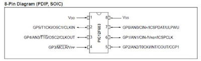 PIC12F683は、1ピンがVddで5v、8ピンのVssがGNDです。